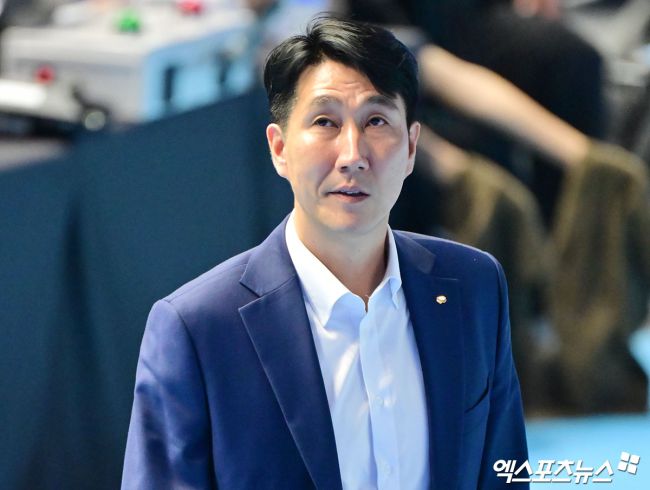 19일 오후 인천 계양체육관에서 열린 '진에어 2025-2026 V-리그' 대한항공과 한국전력의 경기, 한국전력 권영민 감독이 비디오 판독을 기다리고 있다. 김한준 기자 kowel@xportsnews.com