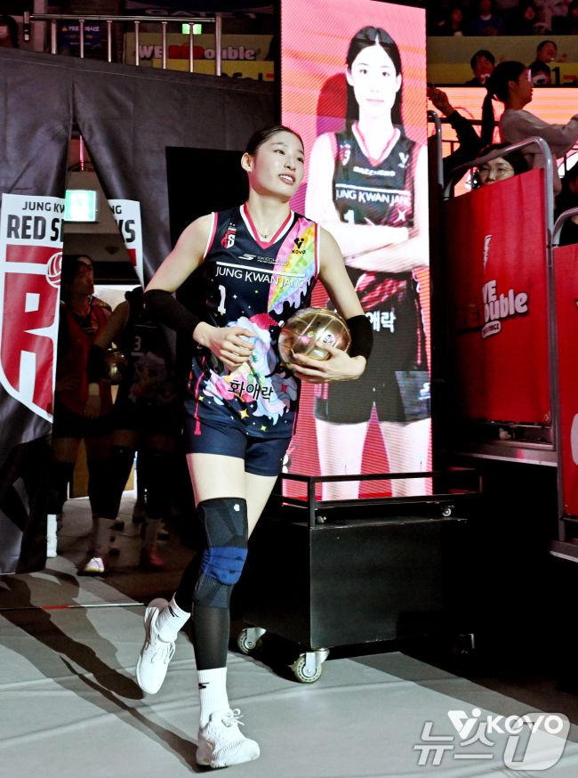 (서울=뉴스1) = 정관장 인쿠시가 19일 오후 대전충무체육관에서 열린 2025-2026 프로배구 V리그 여자부 정관장과 GS칼텍스의 경기에서 입장하고 있다. (한국배구연맹 제공, 재판매 및 DB금지) 2025.12.19/뉴스1 skitsch@news1.kr Copyright ⓒ 뉴스1. All rights reserved. 무단 전재 및 재배포, AI학습