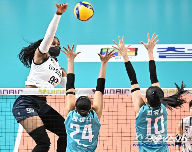 한국도로공사 모마가 스파이크를 때리고 있다. 사진제공=KOVO 한국도로공사 모마가 득점한 뒤 동료들과 기뻐하고 있다. 사진제공=KOVO 한국도로공사 모마가 스파이크를 때리고 있다. 사진제공=KOVO 감기에 걸려 마스크를 쓰고 뛰었을 정도로 컨디션이 좋지 않았다. 하지만 갈수록 점프가 좋아지더니 마지막엔 혼자 득점하며 팀을 승리로 이끌었다. 한국도로공사의 외