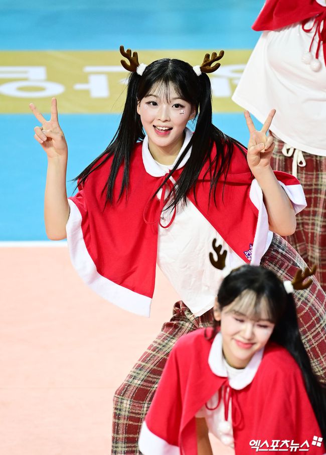 24일 오후 인천 삼산월드체육관에서 열린 '진에어 2025-2026 V-리그' 흥국생명과 IBK기업은행의 경기, 흥국생명 최석화 치어리더가 공연을 선보이고 있다. 박지영 기자 jypark@xportsnews.com