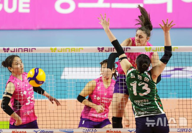 [인천=뉴시스] 홍효식 기자 = 24일 인천 부평구 인천삼산월드체육관에서 열린 2025-2026 V-리그 여자부 3라운드 흥국생명과 IBK기업은행의 경기, 흥국생명 피치가 공격하고 있다. 2025.12.24. yesphoto@newsis.com [사진 영상 제보받습니다] 공감언론 뉴시스가 독자 여러분의 소중한 제보를 기다립니다. 뉴스 가치나 화제성이 있다고