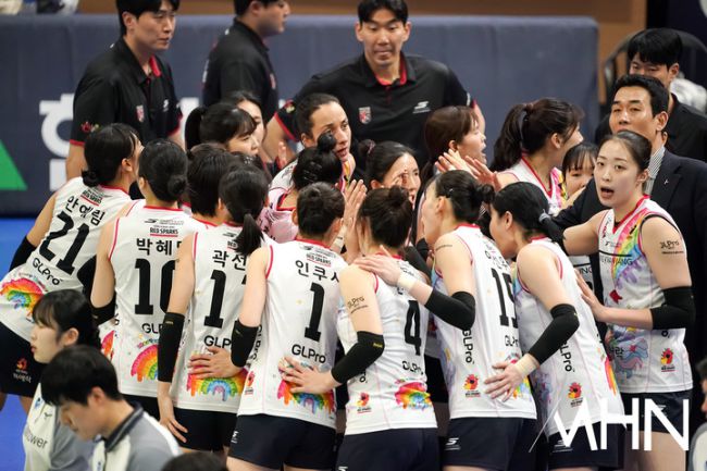 25일 수원실내체육관에서 '2025-2026 V-리그 여자부' 현재 6연승으로 2위(11승6패)를 달리는 현대건설과 7위(5승11패) 정관장 경기가 열렸다. 정관장 선수들이 경기를 펼치고 있다.