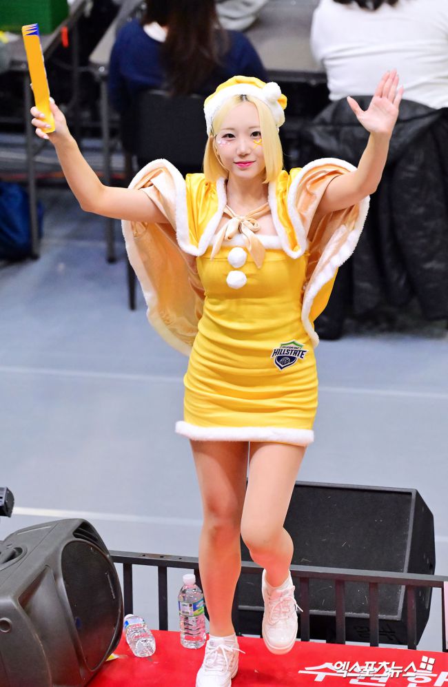 25일 오후 경기도 수원실내체육관에서 열린 '진에어 2025-2026 V-리그' 현대건설과 정관장의 경기, 박성은 치어리더가 열띤 응원을 선보이고 있다. 김한준 기자 kowel@xportsnews.com