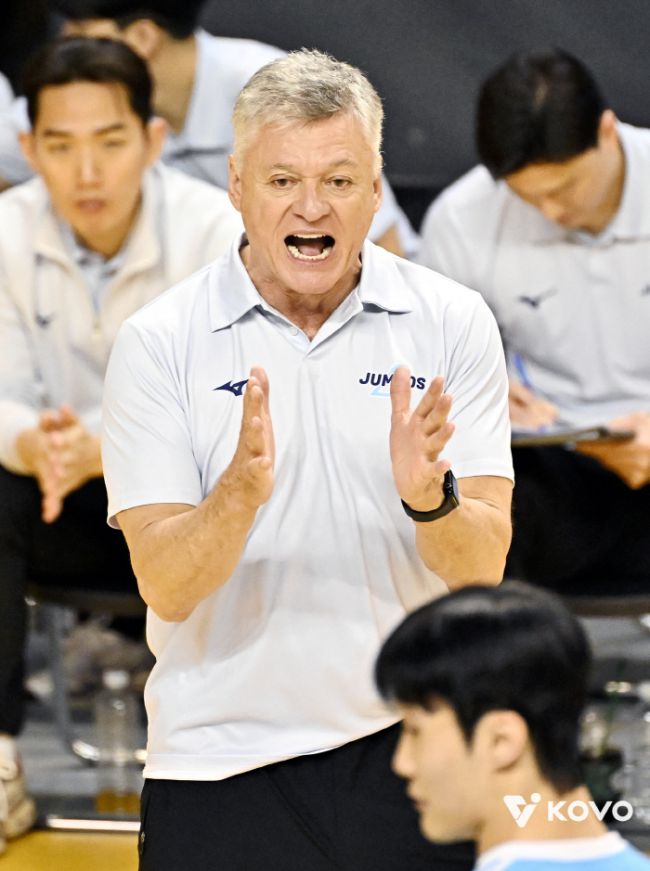 헤난 달 조토 대한항공 감독. 사진제공=KOVO "규정을 한 번 봐야할 거 같다." 대한항공은 25일 의정부 경민대체육관에서 열린 진에어 2025~2026 V-리그 남자부 KB손해보험과의 3라운드 경기에서 세트스코어 1대3(25-19, 25-27, 21-25, 20-25)으로 패배했다. 4세트 묘한 장면이 나왔다. 대한한공이 8-10으로 지고 있던 상황.