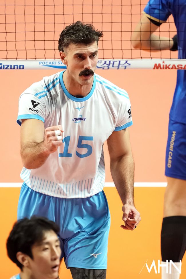 8일 서울 장충체육관에서 '2025-2026 V-리그 남자부' 우리카드와 대한항공 경기가 열렸다. 러셀이 경기를 펼치고 있다.
