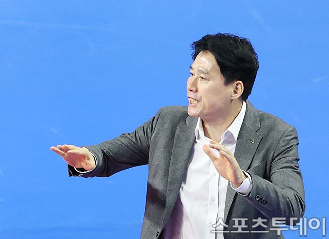 2025-2026 진에어 V-리그 여자부 IBK기업은행-현대건설 경기가 11일 경기도 화성시 화성종합경기타운에서 열렸다. 현대건설 강성형 감독이 작전지시를 하고 있다. 2026.01.11. [스포츠투데이 권광일 기자 sports@stoo.com]