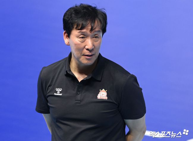 13일 오후 인천 계양체육관에서 열린 '진에어 2025-2026 V-리그' 대한항공과 OK저축은행의 경기, OK저축은행 신영철 감독이 경기를 지켜보고 있다. 고아라 기자 iknow@xportsnews.com