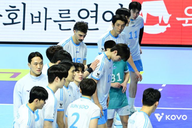 [서울=뉴시스]프로배구 대한항공 4연패. (사진=KOVO 제공) [서울=뉴시스]안경남 기자 = 남자 프로배구 선두 대한항공이 4연패에 빠졌다. 대한항공은 13일 인천 계육체육관에서 열린 프로배구 진에어 2025~2026시즌 V-리그 남자부 홈 경기에서 OK저축은행에 세트 점수 2-3(25-21 20-25 25-20 28-30 13-15)으로 역전패했다. 4