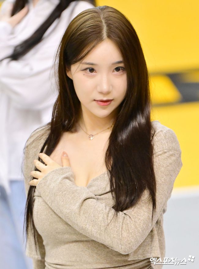 16일 오후 경기도 의정부실내체육관에서 열린 '진에어 2025-2026 V-리그' KB손해보험과 대한항공의 경기, 김현영 치어리더가 리허설에 임하고 있다. 김한준 기자 kowel@xportsnews.com