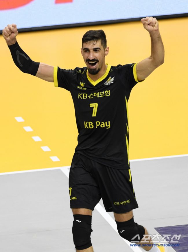 29일 의정부 경민대학교 체육관에서 열린 V리그 남자부 KB손해보험과 현대캐피탈의 경기. KB손해보험 야쿱이 득점 후 환호하고 있다. 의정부=박재만 기자 pjm@sportschosun.com/2025.11.29/ "고민이 크네요." KB손해보험은 16일 의정부 경민대체육관에서 진에어 2025~2026 V-리그 남자부 대한항공과 4라운드 맞대결을 펼친다. 카