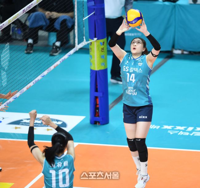 GS칼텍스 김지원이 20일 서울 장충체육관에서 열린 2025~2026 V-리그 정관장과 경기에서 세트업을 하고 있다. 2026. 1. 20. 장충 | 최승섭기자 thunder@sportsseoul.com [기사제보 news@sportsseoul.com] Copyright ⓒ 스포츠서울&sportsseoul.com