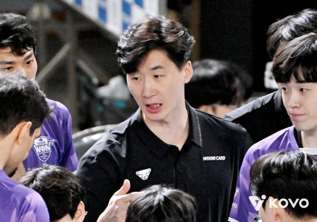 [서울=뉴시스]프로배구 우리카드 박철우 감독대행. (사진=KOVO 제공) [서울=뉴시스]안경남 기자 = 남자 프로배구 우리카드가 최하위 삼성화재에 셧아웃 승리했다. 우리카드는 22일 대전 충무체육관에서 열린 프로배구 진에어 2025~2026시즌 V-리그 남자부 원정 경기에서 삼성화재에 세트 점수 3-0(25-20 25-23 25-17)으로 완승했다. 10승