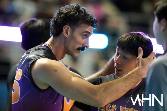 25일 춘천 호반체육관에서 '진에어 2025~2026 V-리그 올스타전'이 열렸다. 현대건설 양효진이 역대 최다 17번째 올스타 무대에 오르고, 한국전력 신영석은 6시즌 연속 팬투표 1위로 출전했다. 러셀이 경기를 펼치고 있다.