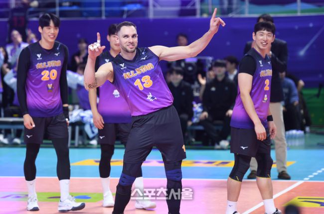 비예나가 25일 춘천 호반체육관에서 열린 2025-2026 V-리그 올스타전에서 득점 후 세리머니를 하고 있다. 2026. 1. 25. 춘천 | 최승섭기자 thunder@sportsseoul.com [기사제보 news@sportsseoul.com] Copyright ⓒ 스포츠서울&sportsseoul.com