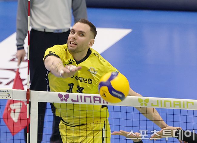 2025-2026 진에어 V-리그 남자부 한국전력-KB손해보험 경기가 18일 경기도 수원시 수원실내체육관에서 열렸다. KB손해보험 비예나가 공격을 하고 있다. 2026.03.18. [스포츠투데이 권광일 기자 sports@stoo.com]