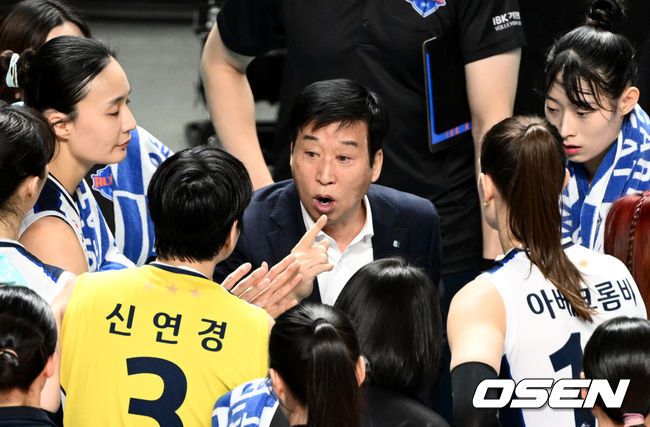 29일 서울 장충체육관에서 ‘도드람 2023-2024 V-리그’ GS칼텍스와 IBK기업은행의 경기가 열렸다.1세트 김호철 감독이 작전을 지시하고 있다. 2023.11.29 /cej@osen.co.kr “원래 우리 선수들 탓을 잘 안하는데 오늘은 탓을 해야겠다” IBK기업은행 알토스는 29일 서울 장충체육관에서 열린 ‘도드람 2023-2024 V-리그’ 2라