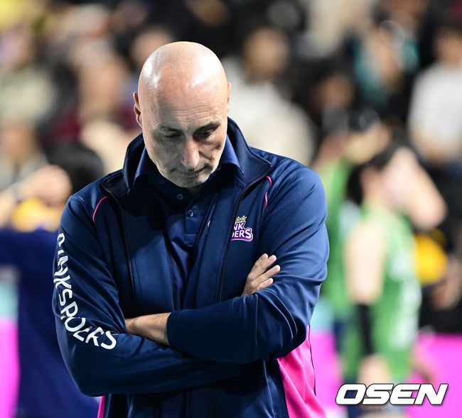 9일 오후 인천삼산월드체육관에서 도드람 2023-2024 V리그 여자부 흥국생명과 GS칼텍스의 경기가 열렸다.흥국생명 아본단자 감독이 생각에 잠겨 있다. 2023.12.09 / jpnews.osen.co.kr “오늘은 우리 경기력이 좋지 않았다. 사실 팀이 3일에 한 번 정도 경기를 할 때 매번 좋은 경기력을 바라기는 어렵다” 흥국생명 핑크스파이더스는 9일