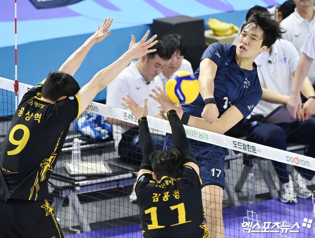 10일 오후 인천 계양체육관에서 열린 ‘도드람 2023-2024 V-리그’ 대한항공과 KB손해보험의 경기, 대한항공 임동혁이 공격을 시도하고 있다. 김한준 기자 kowel@xportsnews.com