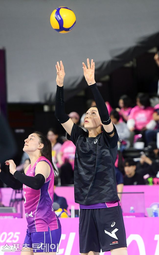 2024-2025 도드람 V-리그 여자부 챔피언 결정전 1차전이 흥국생명-정관장 경기가 31일 오후 경기도 인천시 삼산월드체육관에서 열렸다. 이날 흥국생명 김연경 선수가 몸을 풀고 있다. 2025.03.31. [스포츠투데이 안성후 기자 sports@stoo.com]