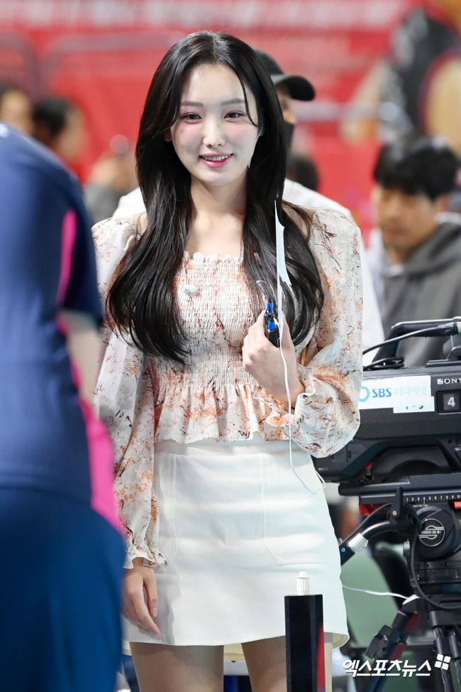 4일 오후 대전 충무체육관에서 열린 '2024-2025 도드람 V-리그' 여자부 챔피언결정전 3차전’ 흥국생명과 정관장의 경기, 김세연 아나운서가 인터뷰를 준비하고 있다. 고아라 기자 iknow@xportsnews.com