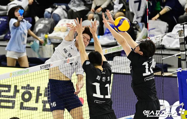 5일 오후 인천 계양체육관에서 열린 '2024-2025 도드람 V-리그' 남자부 챔피언결정전 3차전 현대캐피탈과 대한항공의 경기, 대한항공 정한용이 공격을 시도하고 있다. 박지영 기자 jypark@xportsnews.com