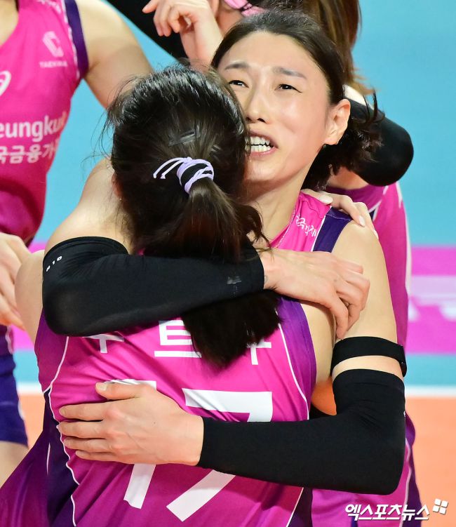 8일 오후 인천 삼산체육관에서 열린 '2024-2025 도드람 V-리그' 여자부 챔피언결정전 5차전 흥국생명과 정관장의 경기, 흥국생명이 정관장에 세트스코어 3:2(26-24 26-24 24-26 23-25 15-13)로 승리하며 통합우승을 차지했다. 통합우승을 차지한 흥국생명 김연경이 기뻐하고 있다. 김한준 기자 kowel@xportsnews.com