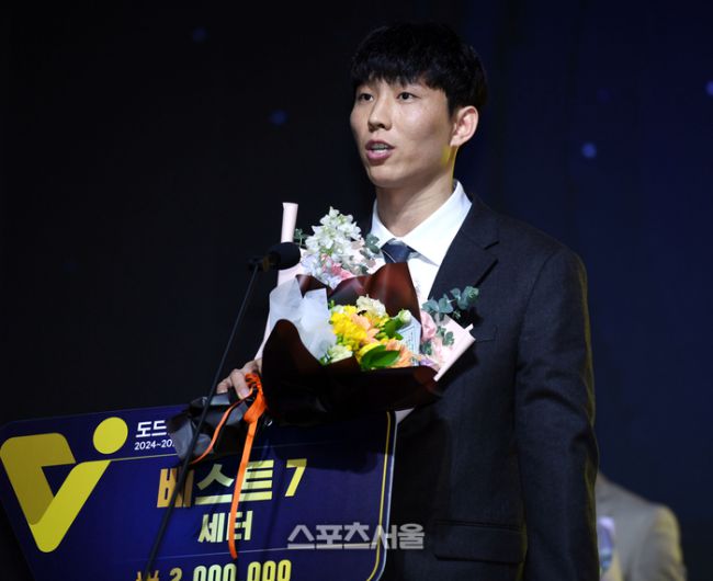 남자부 베스트7 세터 부문 수상자인 KB손해보험 황택의가 14일 서울 서대문구 스위스 그랜드 호텔에서 열린 2024~2025 V-리그 시상식에서 소감을 밝히고 있다. 2025. 4. 14.최승섭기자 thunder@sportsseoul.com KB손해보험 임성진. 사진 | 한국배구연맹 이번 자유계약(FA) 시장의 ‘큰손’은 KB손해보험이다. KB손해보험은 주