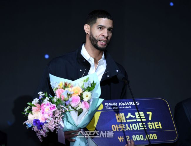 남자부 베스트7 아웃사이드히터상을 수상한 현대캐피탈 레오가 14일 서울 서대문구 스위스 그랜드 호텔에서 열린 2024~2025 V-리그 시상식에서 소감을 밝히고 있다. 2025. 4. 14.최승섭기자 thunder@sportsseoul.com GS칼텍스 실바(왼쪽)가 19일 장충체육관에서 열린 2024-2025 V리그 여자부 페퍼저축은행과 경기에서 스파이크
