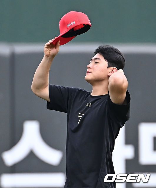 5일 부산 사직야구장에서 2025 신한 SOL 뱅크 KBO 리그 롯데 자이언츠와 KIA 타이거즈의 경기가 열린다. 홈팀 롯데는 감보아가, 방문팀 KIA는 네일이 선발 출전한다.KIA 타이거즈 김도영이 훈련에 앞서 머리를 다듬고 있다. 2025.08.05 / foto0307@osen.co.kr KIA 타이거즈 김도영이 복귀전을 치른다. 날씨는 경기를 치르기에