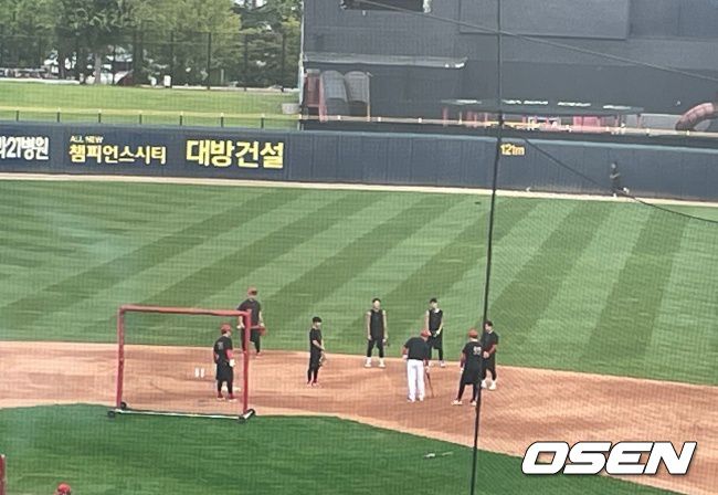 이범호 감독이 내야진을 상대로 수비를 가르치고 있다./OSEN DB 마무리 훈련 시작인가. 이범호 감독은 3일 광주-기아 챔피언스필드에서 열리는 2025 프로야구 SSG 랜더스와의 경기에 앞서 내야수들을 상대로 특별 수비훈련을 진행했다. 그것도 섭씨 34도를 넘은 오후 1시부터 훈련을 시작했다. 특히 1루수 오선우와 전천후 내야수 윤도현을 붙잡고 직접 지도