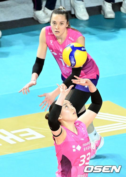14일 오후 인천 삼산월드체육관에서 프로배구 진에어 2025~26 V리그 흥국생명과 한국도로공사의 경기가 열렸다.흥국생명은 11승 10패로 3위, 한국도로공사는 승점 17승 4패로 1위를 기록하고 있다.1세트 흥국생명 이나연이 토스를 시도하고 있다. 2026.01.14 /sunday@osen.co.kr 14일 오후 인천 삼산월드체육관에서 프로배구 진에어 2