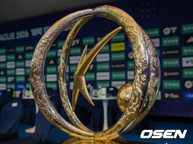 25일 서울 서대문구 스위스그랜드 호텔 컨벤션센터에서 하나은행 K리그 2026 개막 미디어데이가 진행됐다.프로축구 K리그 29개 구단이 새 시즌 개막을 앞두고 저마다 당찬 출사표를 던졌다. K리그 우승 트로피가 행사장에 놓여져 있다, 2026.02.25 / soul1014@osen.co.kr 25일 서울 서대문구 스위스그랜드 호텔 컨벤션센터에서 하나은행 K