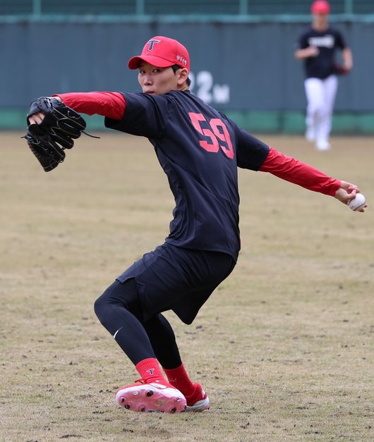 'KIA→한화' 20억 FA 보상선수 1군 캠프 전격 합류, 김경문 감독 "나름대로 자기 볼 던진다…연습경기 투입 예정" [오!쎈 오키나와]