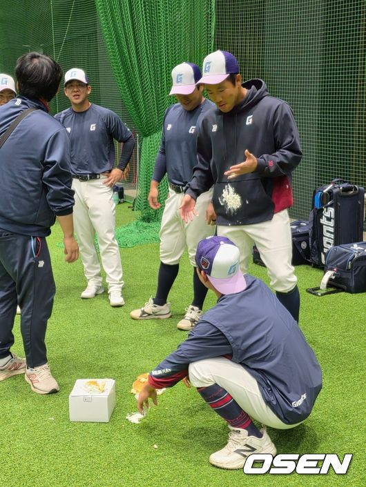 해외 원정 도박 파문으로 어수선한 롯데 자이언츠 스프링캠프 현장에 모처럼 웃음꽃이 피었다. 프로야구 롯데는 25일 일본 미야자키현 미야코노조에 위치한 지바롯데 마린스 실내훈련장에서 스프링캠프 훈련을 소화했다. 당초 야외 훈련이 예정됐지만, 전날 제법 많은 양의 비가 내리며 그라운드 곳곳에 물웅덩이가 고였고, 이에 오전 호텔 시설에서 웨이트 트레이닝을 진행한
