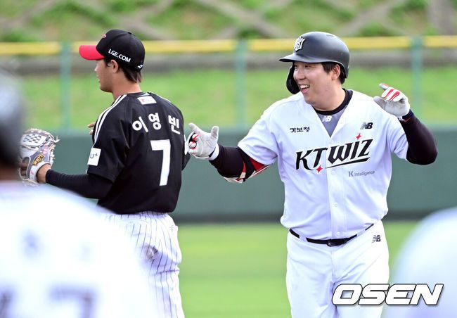 1일 일본 오키나와 구시가와 야구장에서 프로야구 KT 위즈와 LG 트윈스의 연습경기가 열렸다.이날 경기에서 KT는 오원석, LG는 요니 치리노스를 선발로 내세웠다.5회말 1사 주자없는 상황 KT 김현수가 2루타를 날린 뒤 교체되고 있다. 2026.03.01 / dreamer@osen.co.kr “다들 KT가 진짜 좋다더라. 내가 봐도 KT가 좋다. 선발이