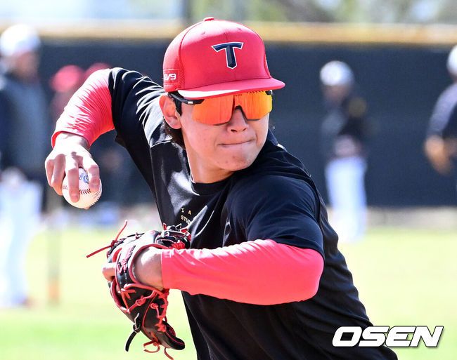 11일(한국시간) 미국 캘리포니아주 어바인 그레이트파크 베이스볼 컴플렉스에서 KIA 타이거즈의 1차 스프링캠프가 진행됐다.KIA 선수단은 오는 18일 미국에서 출발해 19일 인천으로 입국한 뒤 20일에 일본 오키나와로 건너가 21일부터 3월 4일까지 킨 구장에서 본격적인 실전을 치른다.KIA 김도영이 수비 훈련을 하고 있다. 2025.02.11 / sund