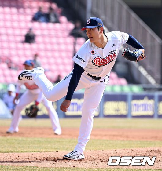 두산 곽빈. 2025.03.13 / jpnews@osen.co.kr 프로야구 두산 베어스의 간판 선발이자 국가대표 에이스로 활약 중인 곽빈이 퓨처스 무대에서 최종 점검에 나섰다. 5회까지 마운드를 지키며 단 한 점도 내주지 않았다. 곽빈은 19일 고양 야구장에서 열린 퓨처스리그 고양 히어로즈와의 원정 경기에 선발 등판, 5이닝 1피안타 3볼넷 6탈삼진 무실