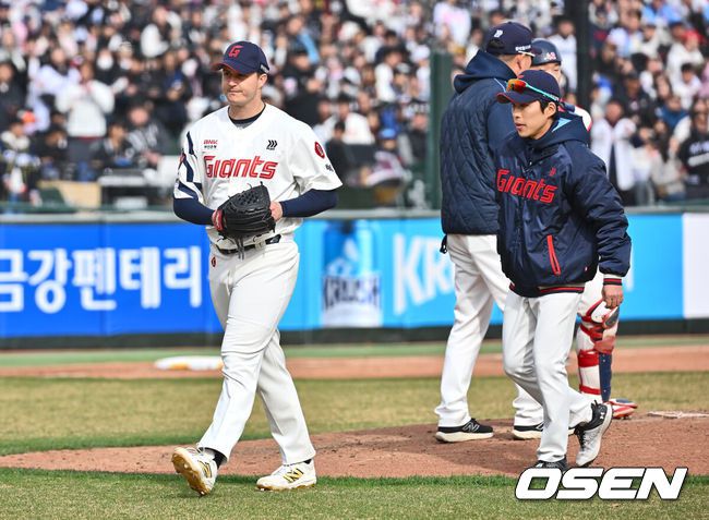 30일 부산 사직야구장에서 2025 신한 SOL 뱅크 KBO 리그 롯데 자이언츠와 KT 위즈의 경기가 열렸다. 홈팀 롯데는 데이비슨이 선발로 출전하고, 방문팀 KT는 고영표가 선발로 출전했다.롯데 자이언츠 선발 투수 데이비슨이 7회초 교체되고 있다. 2025.03.30 / foto0307@osen.co.kr 순리대로 경기가 흘러갔다면 어쩌면 비교적 쉽게 승