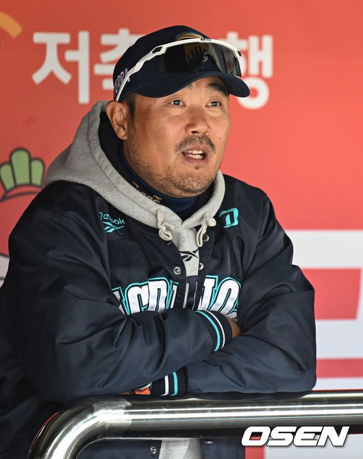 10일 오후 경기도 수원 KT위즈파크에서 ‘2025 신한 SOL Bank KBO리그’ KT 위즈와 NC 다이노스의 경기가 열린다.홈팀 KT는 오원석, 방문팀 NC는 라일리를 선발로 내세웠다.NC 이호준 감독이 훈련을 지켜보고 있다. 2025.04.10 /cej@osen.co.kr 프로야구 NC 다이노스 이호준 감독이 홈구장을 사용하지 못하는 어려운 상황에서