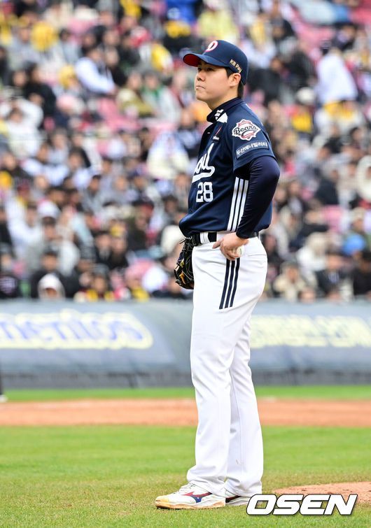 ] 13일 서울 잠실야구장에서 2025 신한 SOL Bank KBO리그 LG 트윈스와 두산 베어스의 경기가 열린다.이날 LG는 손주영, 두산은 최승용을 선발로 예고했다.5회말 2사 만루에서 두산 최승용이 교체되고 있다. 2025.04.13 / jpnews@osen.co.kr ] 13일 서울 잠실야구장에서 2025 신한 SOL Bank KBO리그 LG 트윈스