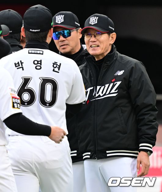 이강철 감독이 박영현을 보고 활짝 웃고 있다./OSEN DB "형준이가 너무 아까웠다". 이강철 KT 위즈 감독이 화제를 모았던 8회초 1사3루 위기 풀카운트에서 마무리 박영현을 전격 투입했던 이유를 밝혔다. 당연히 한 점 차 승부라 경기 흐름을 넘기지 않겠다는 의지였고 호투를 펼친 선발 소형준의 승리를 지켜주고 싶었다는 것이다. 이감독은 지난 13일 삼성