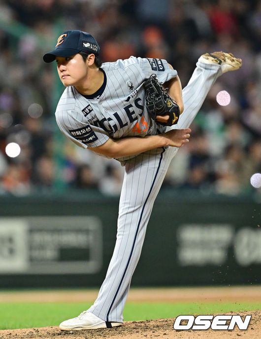 17일 오후 SSG 랜더스 필드에서 ‘2025 신한 SOL BANK KBO리그’ SSG 랜더스와 한화 이글스의 경기가 열렸다.이날 SSG는 미치 화이트를, 한화는 류현진을 선발투수로 내세웠다. 8회말 한화 정우주가 마운드에 올라 힘차게 공을 뿌리고 있다. 2025.04.17 / ksl0919@osen.co.kr 프로야구 한화 이글스 정우주(19)가 데뷔 첫