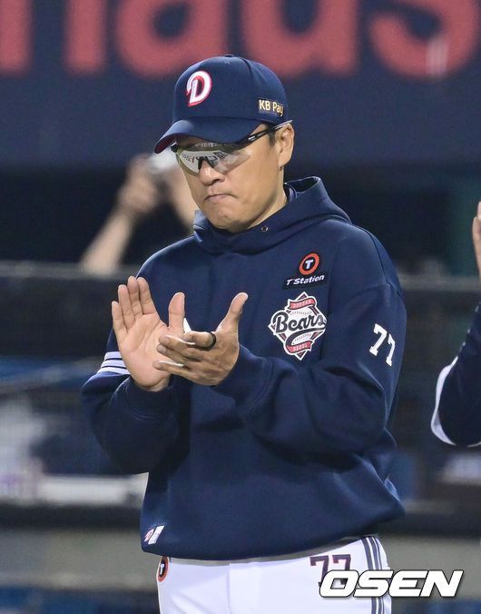 두산이 현역 빅리거 출신 외국인타자 제이크 케이브의 맹타를 앞세워 KIA를 완파했다.프로야구 두산 베어스는 18일 서울 잠실구장에서 열린 2025 신한 SOL뱅크 KBO리그 KIA 타이거즈와의 시즌 첫 맞대결에서 7-1로 승리했다. 경기 종료 후 두산 이승엽 기뻐하고 있다. 2025.04.18 / ksl0919@osen.co.kr 18일 오후 서울 잠실야구