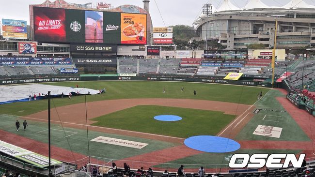 봄비 그쳤고 방수포 걷었다. LG-SSG 라인업 공개...오후 2시 정상 개시 준비 [오!쎈 인천]