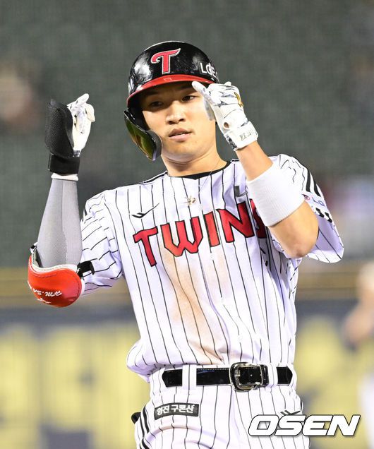 23일 오후 서울 잠실야구장에서 2025 신한 SOL Bank KBO리그 LG 트윈스와 NC 다이노스의 경기가 열렸다.LG는 송승기, NC는 로건을 선발 투수로 내세웠다.4회말 2사 LG 박해민이 안타를 날린 뒤 세리머니를 하고 있다. 2025.04.23 / ksl0919@osen.co.kr LG 오지환. 2025.04.12 /cej@osen.co.kr 프
