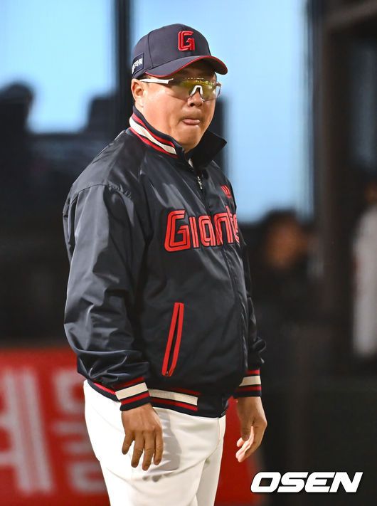 24일 부산 사직야구장에서 2025 신한 SOL 뱅크 KBO 리그 롯데 자이언츠와 한화 이글스의 경기가 열렸다. 홈팀 롯데는 박세웅, 방문팀 한화는 류현진이 선발 출전했다.롯데 자이언츠 김태형 감독이 한화 이글스를 5-3으로 누르고 9연승을 저지한 후 힘든 표정을 짓고 있다. 2025.04.24 / foto0307@osen.co.kr 프로야구 롯데 자이언츠
