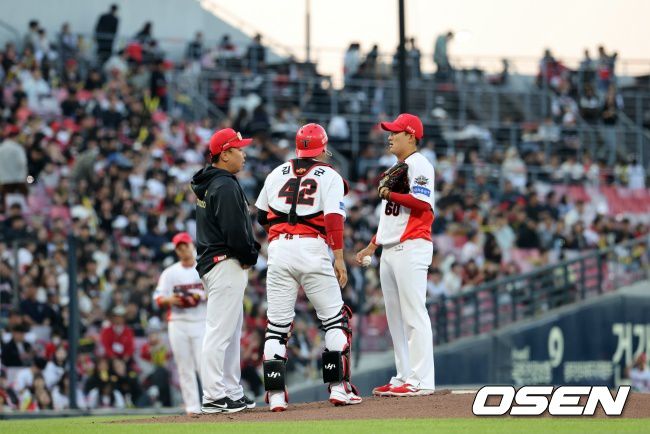 이범호 감독이 마운드에 올라가 김도현과 이야기를 나누고 있다./KIA 타아거즈 제공 "바보 같은 짓을 했다. 까불지 않겠다". KIA 타이거즈 우완 김도현(24)이 감독에게 혼쭐나며 6경기만에 값진 시즌 첫 승을 따냈다. 29일 광주-기아 챔피언스필드에서 열린 2025 프로야구 NC 다이노스와의 경기에 등판해 5⅔이닝 6피안타(1홈런) 2볼넷 3탈삼진 3실