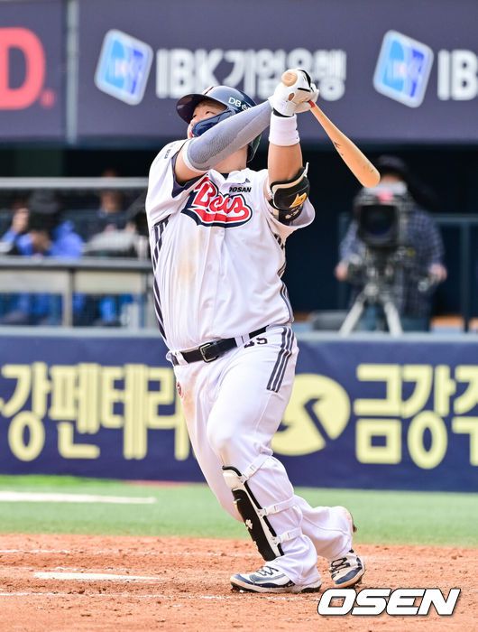 OSEN DB 두산 이승엽 감독의 헤이수스 킬러 5번 배치가 통했다. 프로야구 두산 베어스 포수 김기연은 30일 서울 잠실구장에서 열린 2025 신한 SOL뱅크 KBO리그 KT 위즈와의 시즌 5차전에 5번 지명타자로 선발 출전해 두 번째 타석에서 아치를 그렸다. 김기연은 1-4로 뒤진 4회말 선두타자로 등장, KT 선발 엔마누엘 데 헤이수스를 상대로 솔로홈