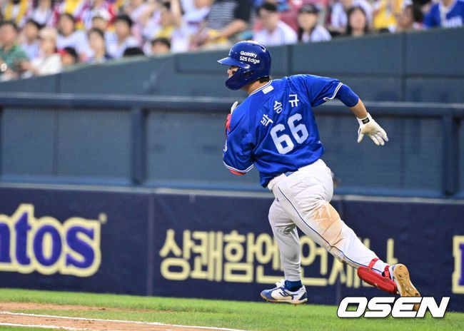 31일 오후 서울 잠실구장에서 ‘2025 신한 SOL Bank KBO리그’ LG 트윈스와 삼성 라이온즈의 경기가 열렸다.이날 LG는 치리노스, 삼성은 원태인을 선발투수로 내세웠다.9회초 무사에서 삼성 박승규가 좌전 안타를 날리며 전력질주를 하고 있다. 2025.05.31 /jpnews@osen.co.kr 삼성 라이온즈가 롯데 자이언츠 외국인 투수 알렉 감보