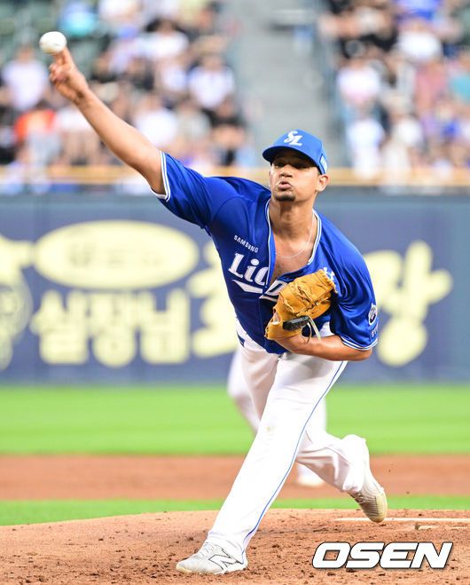 2일 서울 잠실야구장에서 ‘2025 신한 SOL Bank KBO리그’ 두산 베어스와 삼성 라이온즈의 경기가 열렸다.홈팀 두산은 콜 어빈, 방문팀 삼성은 헤르손 가라비토를 선발로 내세웠다.2회말 삼성 선발 가라비토가 힘차게 공을 뿌리고 있다. 2025.07.02 / dreamer@osen.co.kr 2일 서울 잠실야구장에서 ‘2025 신한 SOL Bank K